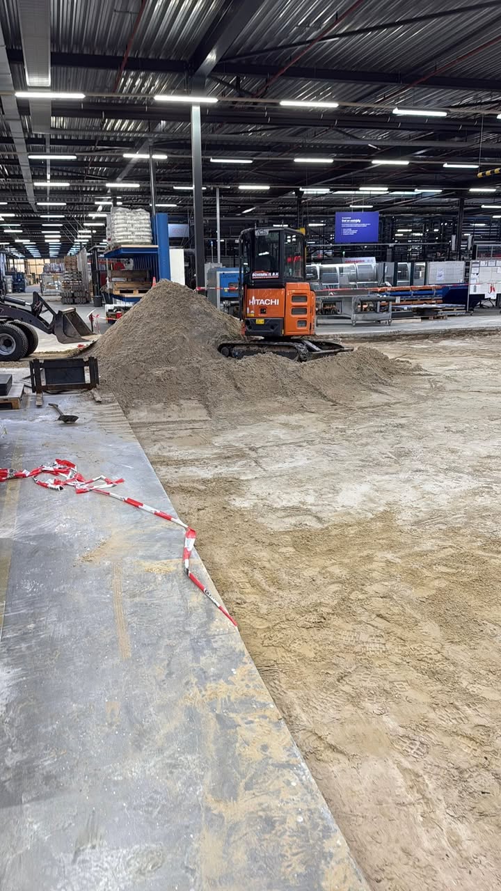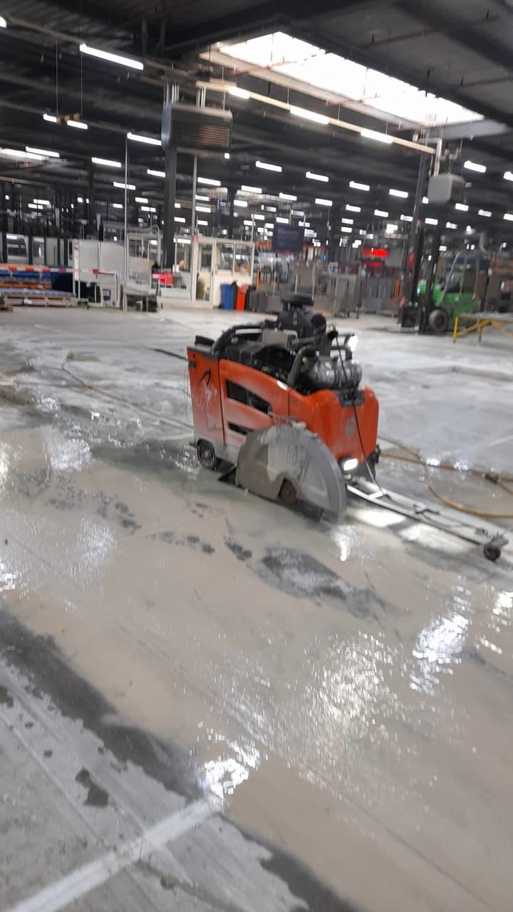 Weer een mooie vloersparing mogen realiseren: 25 m¹ x 25 m¹, 15 cm dik, volledig in blokken gezaagd en zorgvuldig verwijderd.